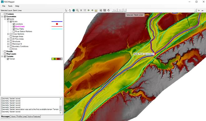 Remark: If the Terrain does not show, make sure both Terrains and Terrain are ticked. If still does not work, zoom in and zoom out. If still does not work, save (File→Save), close RAS Mapper and HEC-RAS and open all again.