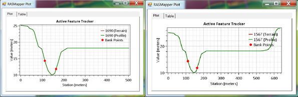 4) Each Cross Section should intersect the centerline, both bank lines and both flow paths once.