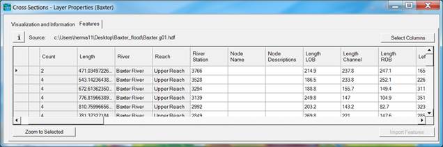 Additionally, as soon as cross-sections are created, HEC-RAS attributes to them: Reach/River name; station number; bank stations; and downstream reach lengths. All these attributes are based on the intersection of cross-sections with other layers. The attributes added for both rivers and cross-sections can be seen by: