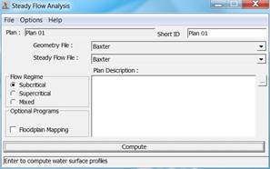 HEC-RAS allows for two main types of simulation: steady and unsteady state analysis. In steady state analysis, constant boundary conditions are entered, whilst for unsteady it is included a hydrograph. In this tutorial it is performed several steady state analysis because they correspond better with evaluating design floods (e.g. 100-year flood).