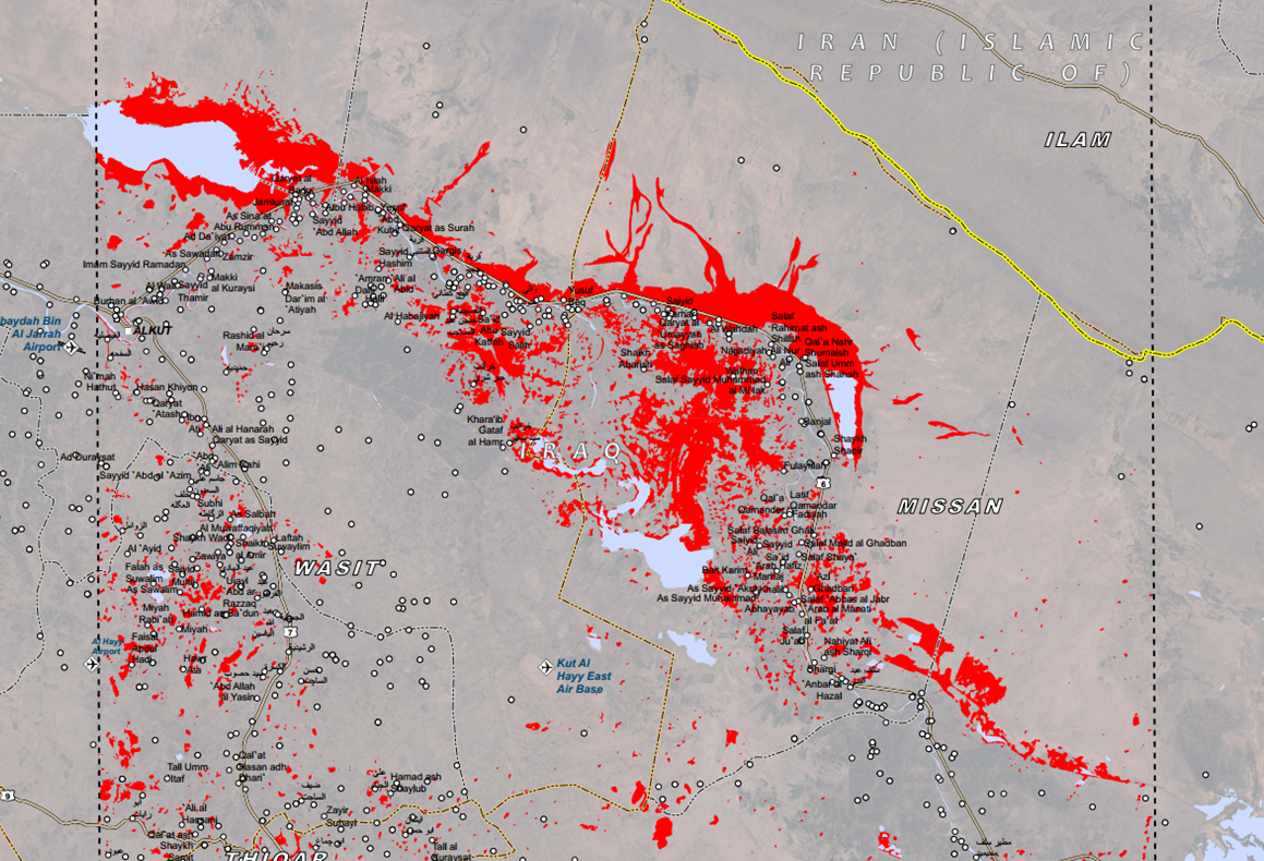 After UN-SPIDER received a request from Iraq to facilitate the acquisition of satellite imagery to assess the extent of the flood and the damages caused, UN-SPIDER activated its network. The Indian Space Agency acquired imagery and UN-SPIDER provided its servers to disseminate the data. The images are processed by UNOSAT by rapid mapping for flood extension. The maps will be made available to Iraq free of charge.