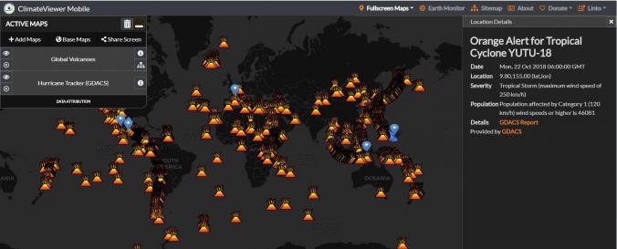 | Space-based Information: | The data gathered and made accessible in the ClimateViewer web map is pulled from different government, university and private sources. The web map presents over 500 data sources, grouped by hazard type and with links to further information on the data sources used. Hazard maps for fire for example apply the same data sources as NOAAs hazard map as well as the NASA's Fire Information for Resource Management System (FIRMS). |