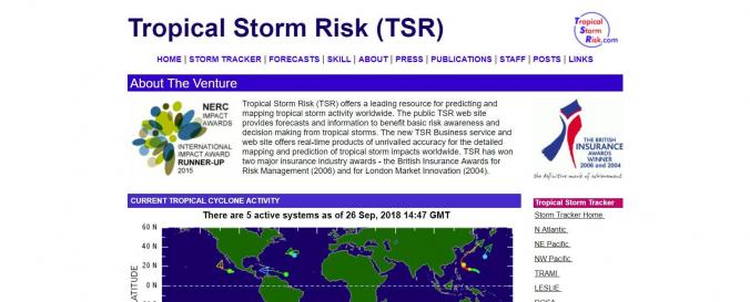 | Requirements: | The TSR Tropical Storm Tracker presents tropical cyclone data received from three tropical cyclone warning centers via the UK Met. Office DPDS service. Users can also register to obtain storm alerts. Near-real time data is presented on the website and seasonal forecasts are made separated by geographical region. Forecasts are separated by geographical region: Hurricanes: Atlantic ACE Index and USA and Caribbean Landfalling Typhoons: Northwest Pacific ACE Index and System Numbers Cyclones: Australian Region ACE Index, System Numbers and Landfalling STR presents the accuracy of its predictions through hindcast skill plots which are also available on their website. |