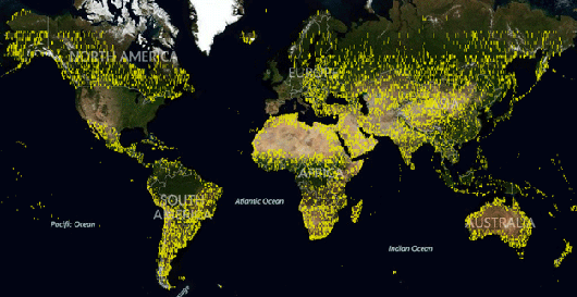 On 25 June 2012, Bing Maps announced the publication of its largest satellite release to date. This release is larger than all of the past Aerial releases combined. The latest Aerial release includes new Satellite imagery as well as Global Ortho photography. Both releases total 165 terabytes of new data live on Bing Maps. Prior to this, the existing Aerial footprint was 129 terabytes total. This release features imagery over North America, South America, Africa, Australia, Europe and Asia. The total area covered in this data release is nearly 38 million square kilometers.