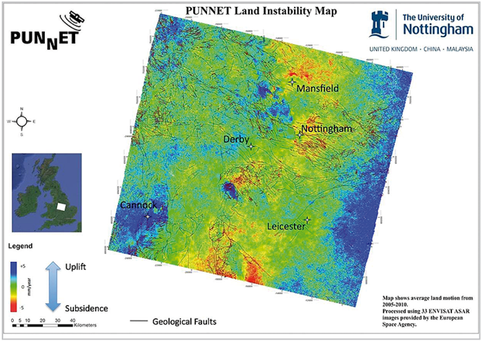 The Punnet project is a satellite-based land stability monitoring and mapping solution for exploration, construction, and environmental protection purposes. The project is based on a novel algorithm, which enables the software to deliver extensive and clear imagery of deformation features over a wide range of land covers. Punnet Land Instability Maps provide solutions for geohazards monitoring, such as landslides, earthquakes and land subsidence due to natural resources.