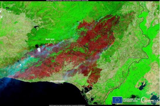 Image: Sentinel-2 data showing the burn scar in East Macedonia and Thrace near Alexandropoulis on 23 August 2023. Source: European Union, Copernicus Sentinel-2 imagery