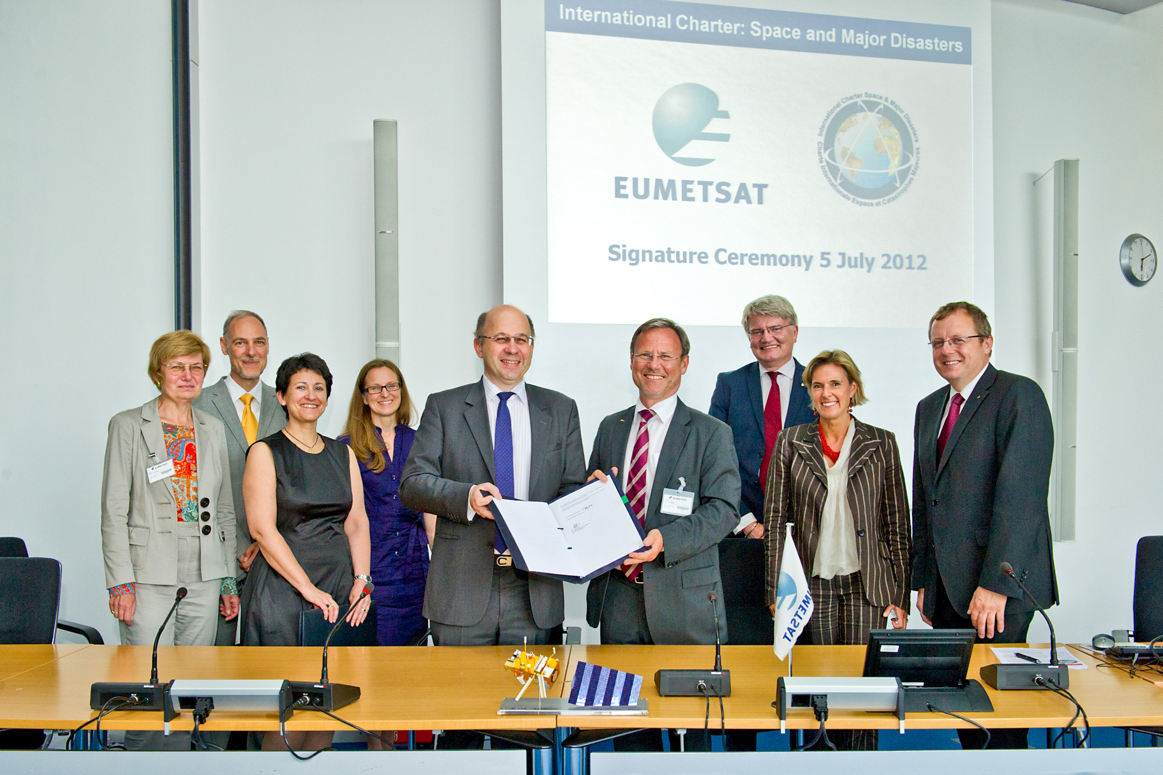 The European Organisation for the Exploitation of Meteorological Satellites – Eumetsat – formally became the newest member of the International Charter ‘Space and Major Disasters’ on 5 July. Eumetsat operates a constellation of meteorological satellites, monitoring the atmosphere, oceans and land surfaces to deliver weather and climate-related satellite data, images and products. As the charter’s newest member, Eumetsat will act as a coordinator for securing access to Eumetsat data for the members and beneficiaries of the Charter and the redistribution of products of the Charter via GEONETCast.