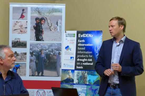 The workshop agenda included presentations, as well as discussions and overviews about the EvIDENz’s work plan and details, drought risk management, international conventions like the Sendai framework and Earth observation.