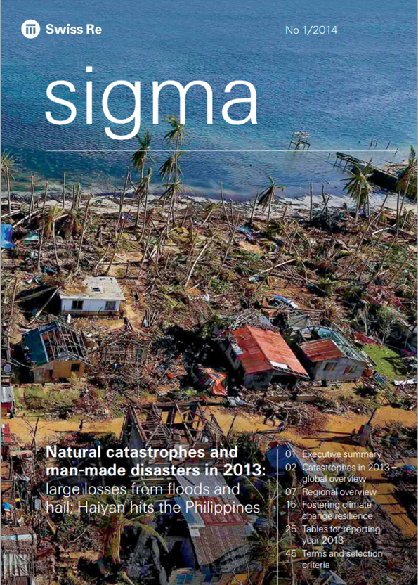 According to a recent study published by the re-insurance company Swiss Re, the total economic losses from natural catastrophes and man-made disasters were USD 140 billion in 2013. Of these, the global losses that were insured amounted to USD 45 billion. Most of these losses were caused by disasters triggered by natural hazards, such as floods and hail events.