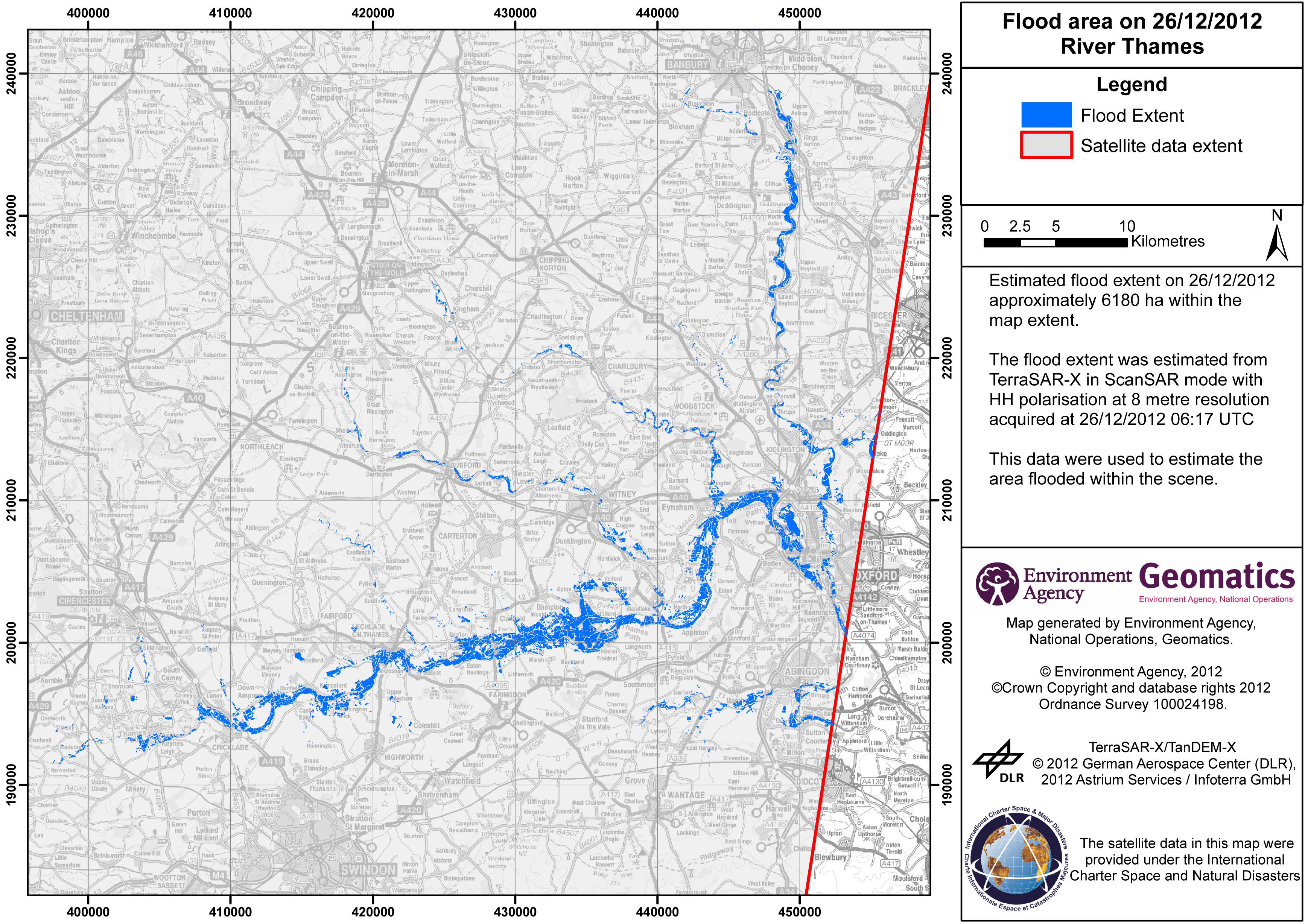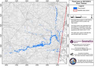 Heavy rain swept across the UK over the weekend of 22 and 23 December. This resulted in flooding across the country, particularly affecting south-west England and Wales. The activation of the International Charter "Space and Major Disasters" was requested on 21 December 2012 with the Environment Agency (of England and Wales) being the project manager.
