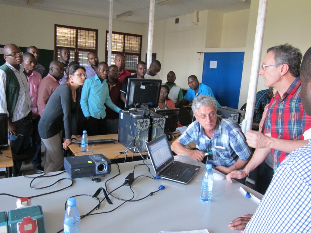 The participants were actively involved in the processing of digital elevation models, rainfall data, satellite imagery and geographic data on infrastructure, utilities and population. The training took place at a computer laboratory of the Eduardo Mondlane University, one year after the mission team of a UN-SPIDER Technical Advisory Mission in 2012 had evaluated the current and potential use of space-based information for disaster management in Mozambique.