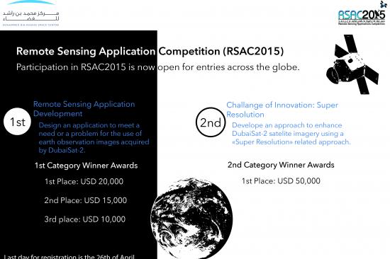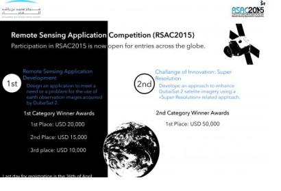 For more information on the rules of this competition, please visit the dedicated website: http://mbrsc.ae/en/page/remote-sensing-applications-competition-rsac-2015.