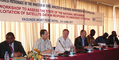 A team of eleven international experts was fielded to Cameroon from 6 to 10 June 2011. The team included representatives of UNOCHA Regional Office for West and Central Africa, Senegal, the Regional Center for Training in Aerospace Surveys (RECTAS), Nigeria, the National Space Research and Development Agency (NASRDA), Nigeria, the Algerian Space Agency (ASAL), the National Emergency Management Agency (NEMA), Nigeria, Planet Action, France, DMC & DMCii, Surrey Satellite Technology Ltd., UK, and UNOOSA/UN-SPIDER. This broad range of expertise and in-depth knowledge guaranteed a high quality of technical advice and an excellent base for south-south cooperation and technology transfer at the same time. The mission has bridged various organizations involved in disaster management within the country, and the presence of ASAL, RECTAS and NARSDA (which is also a Regional Support Office of UN-SPIDER), strengthened the links of Cameroon with these organizations, which can enhance valuable advisory support and regional cooperation.