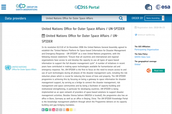 UNOOSA becomes data provider in the Group on Earth Observations System of Systems (GEOSS)
