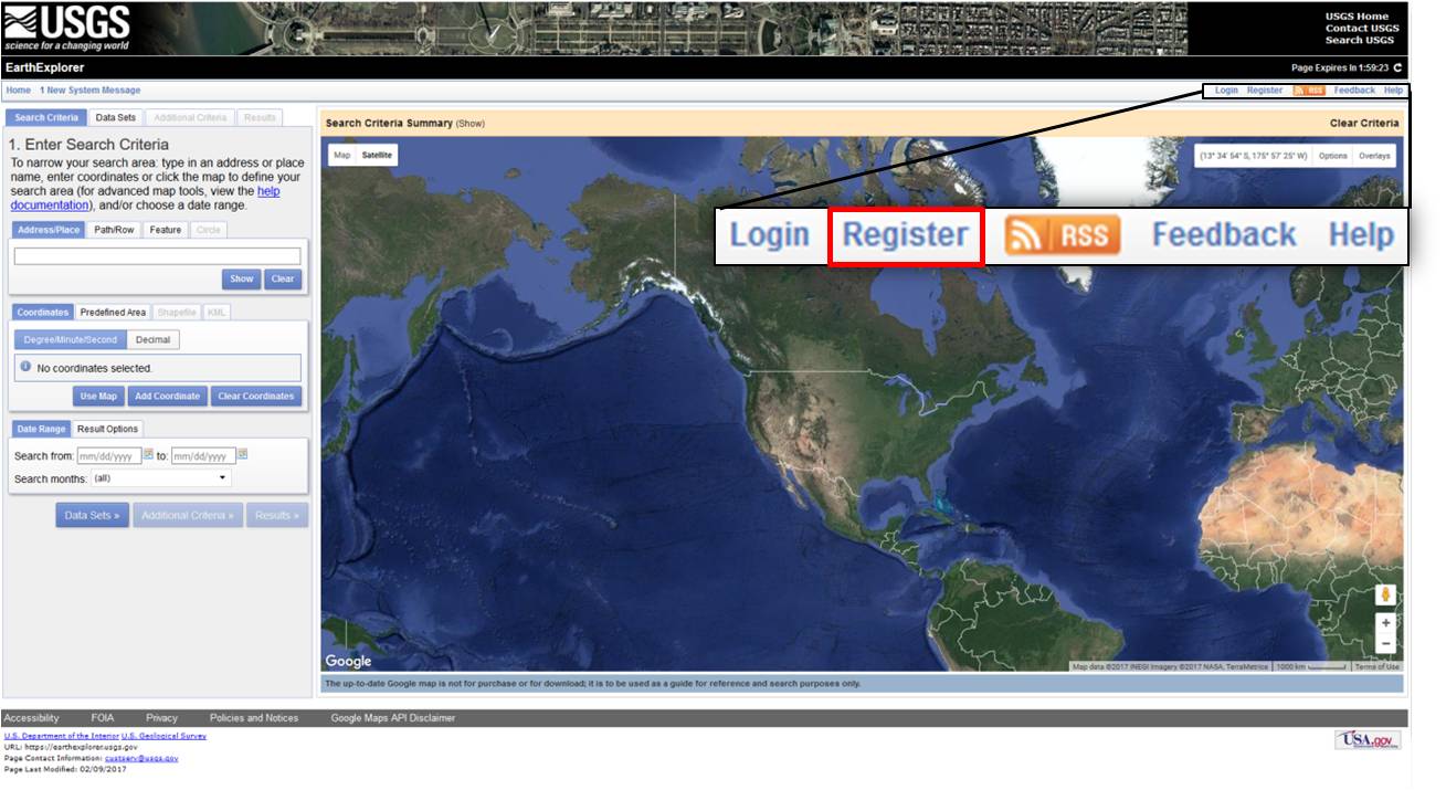 1. Open the EarthExplorer website